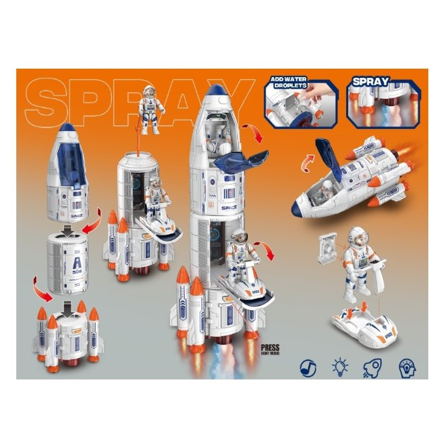 Космическата станция се състои от 3 разглобяеми части, има отварящи се люкове, отвор за вода, има светлина и звук.