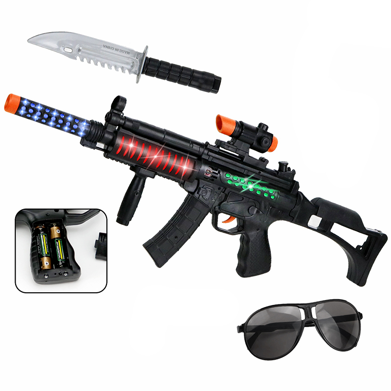 Автомат със звукови и светлинни ефекти, макет на нож и очила.