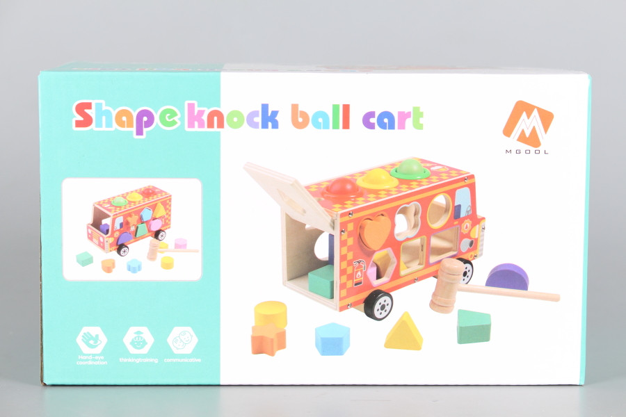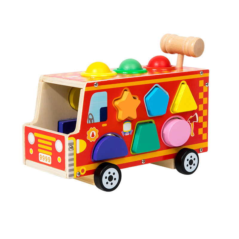 Дървен бус сортер с чук и топки