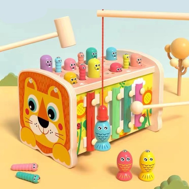 Дървен център Лъвче с ксилофон, чукче и риболов
