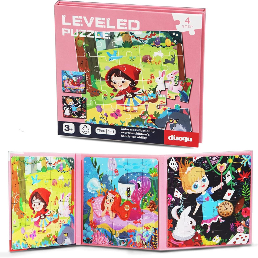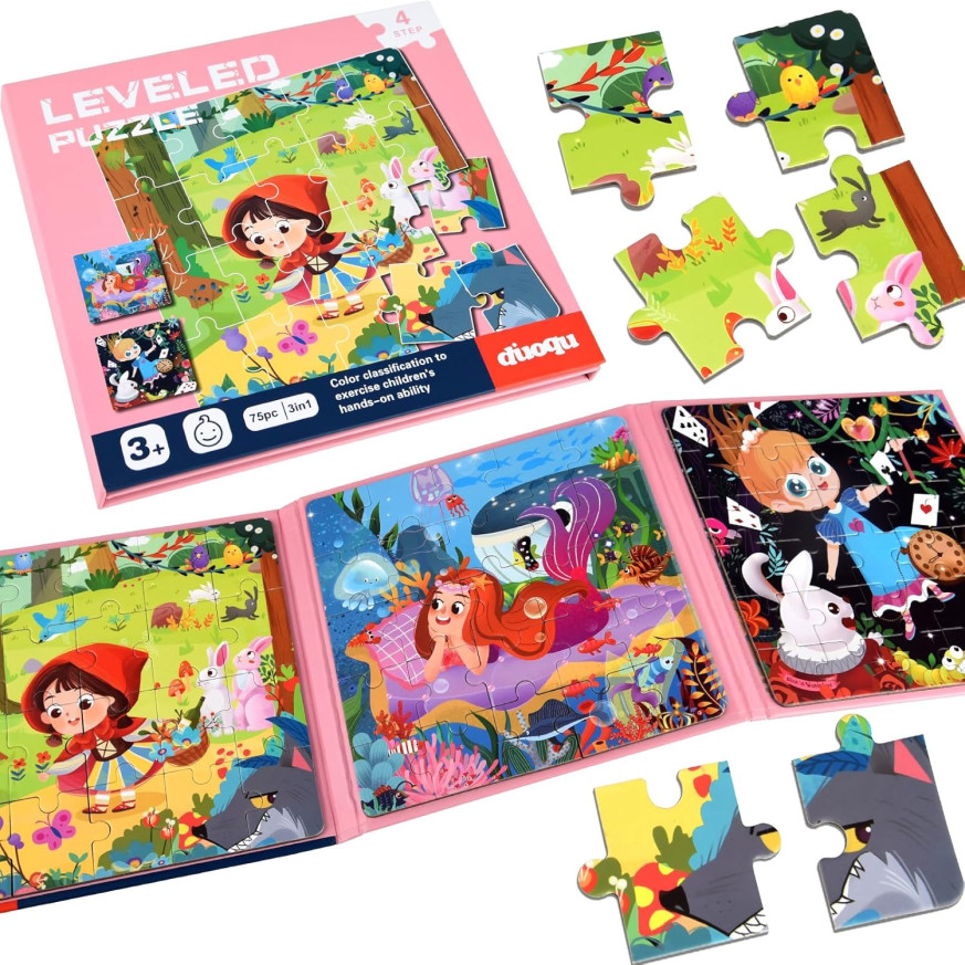 Проектиран специално за деца на възраст от 3 до 8 години, този комплект включва три магнитни пъзела с различни нива на трудност, което го прави отличен инструмент за подпомагане на растежа и когнитивното им развитие.