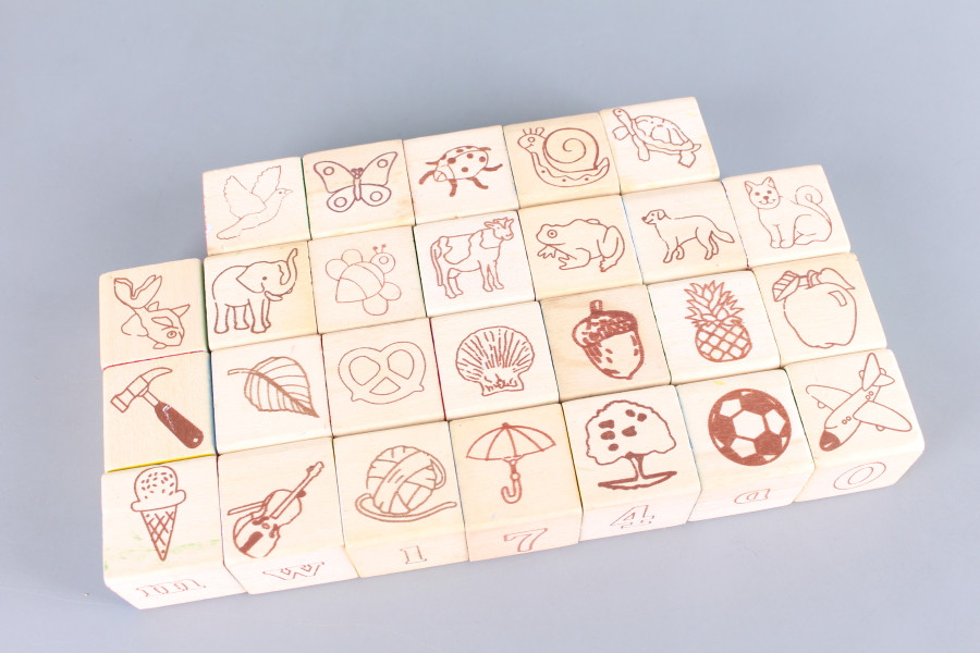 - дървени елементи с различна форма, големина и цвят,