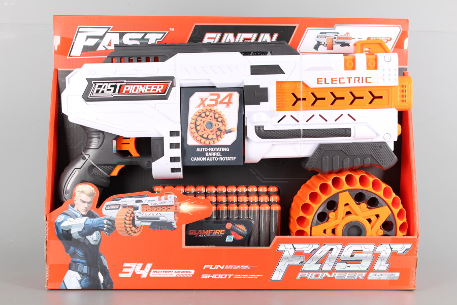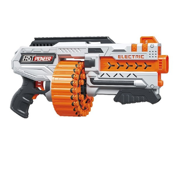 Този електрически бластер използва меки EVA куршуми, безопасни за игра.