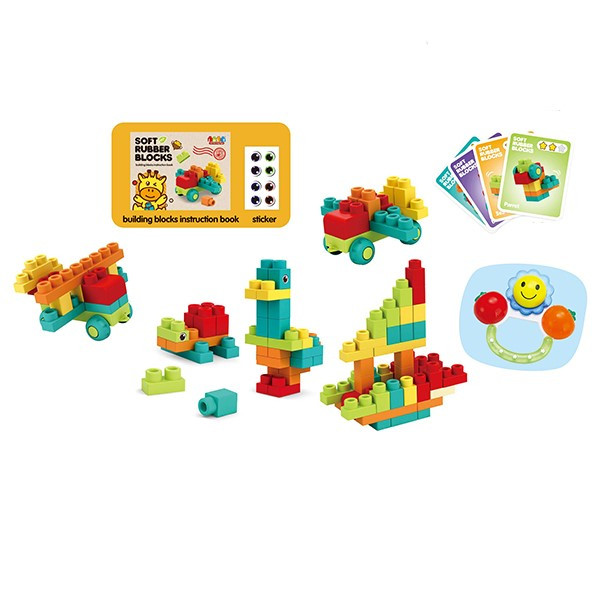 Тази детска конструкторска играчка се състои от 52 меки гумени части, които са удобни за хващане от малките деца.