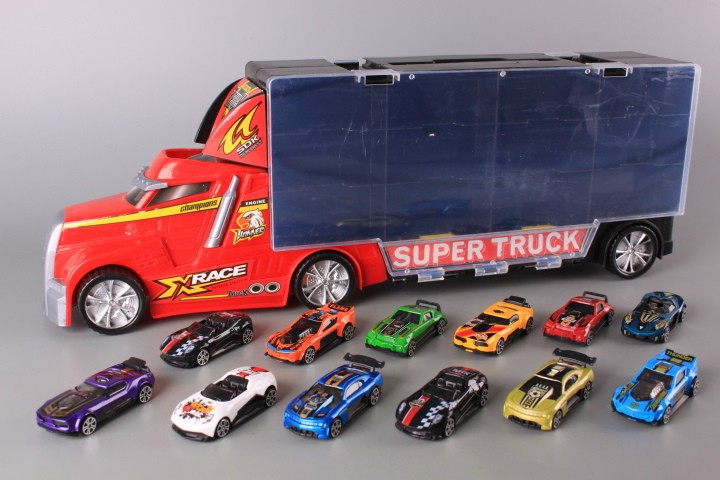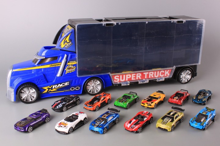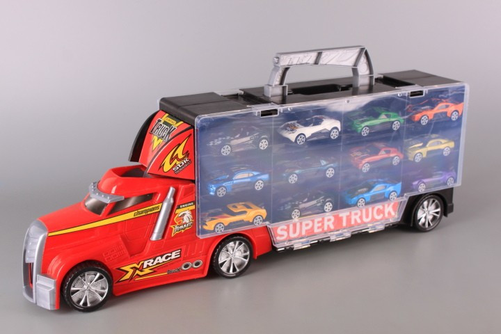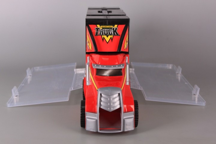 Поставете количка върху кабината на камиона, тя ще се спусне надолу и ще излезе през отвора на камиона отпред.