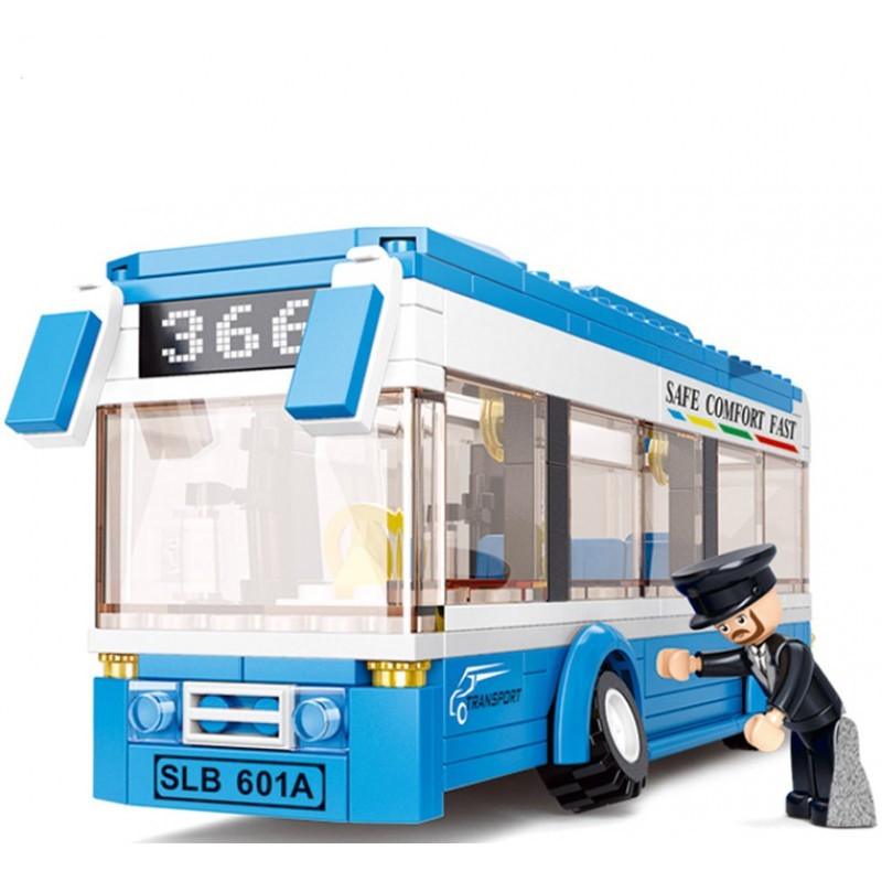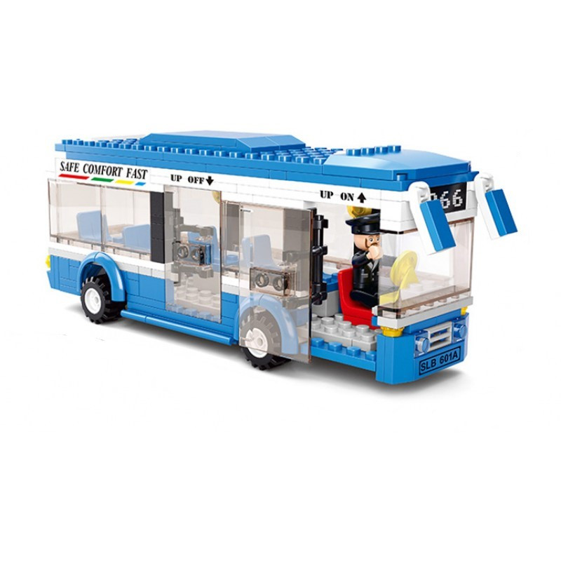 Детски конструктор от 235 елемента за построяване на.градски автобус и три фигурки на човечета.