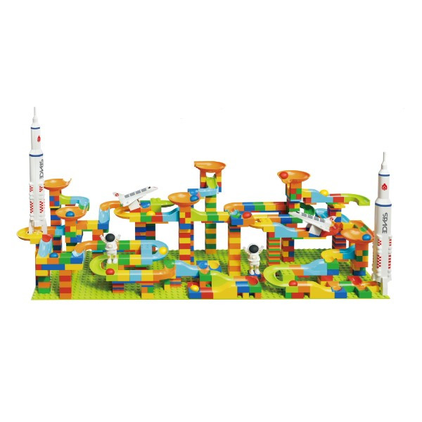Яркият цветен конструктор с космическа тематика предлага вълнуващи състезания с топчета и творческа игра за децата!