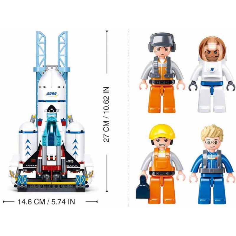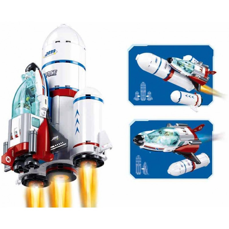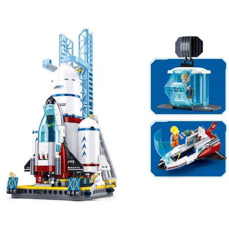Конструктор за сглобяване на ракетна площадка с ракета носител, совалка и транспортно средство.