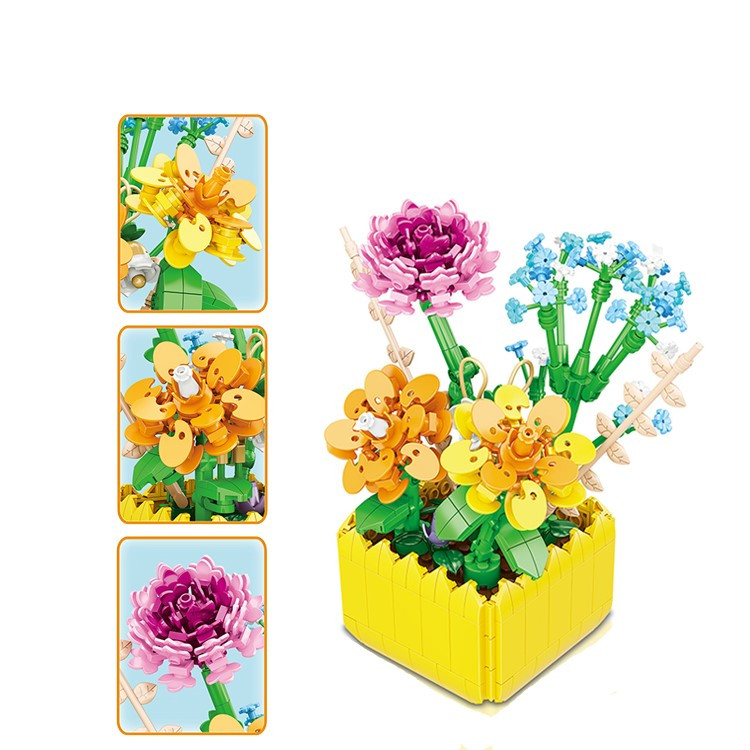 Комплектът съдържа 549 елемента на конструктор за сглобяване на цъфтящи цветя.