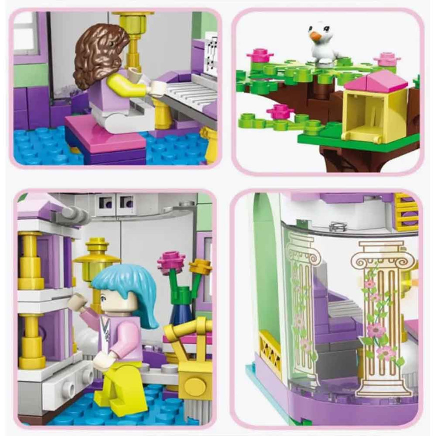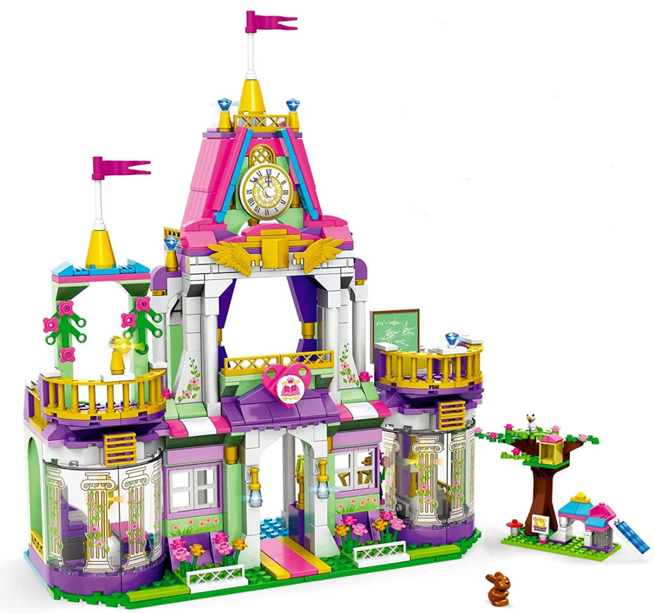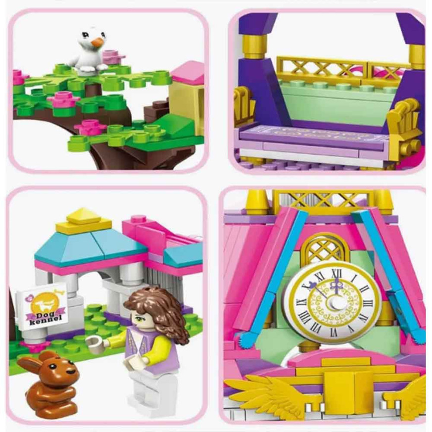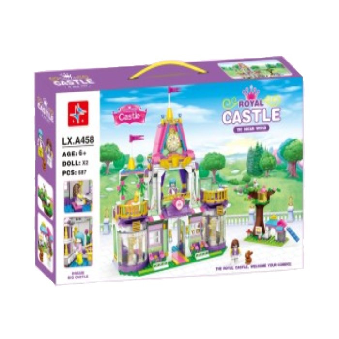 Комплектът съдържа 687 елемента на конструктор за построяването на замък.
