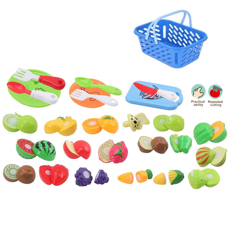 Съберете двете части на плодовете и зеленчуците, посредством велкро лепенките, след което можете да ги "разрежете" с ножчето.