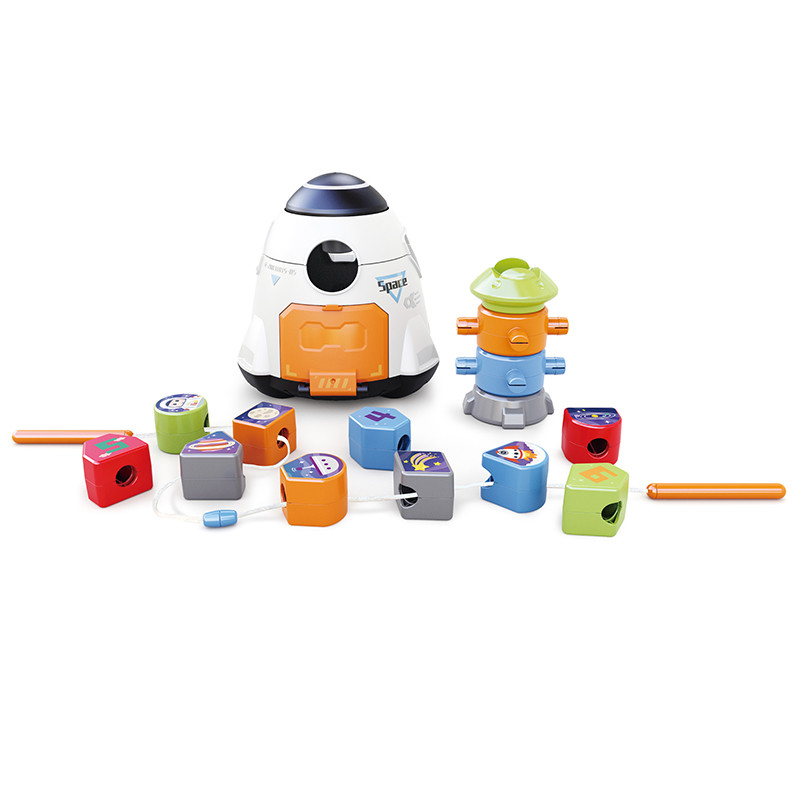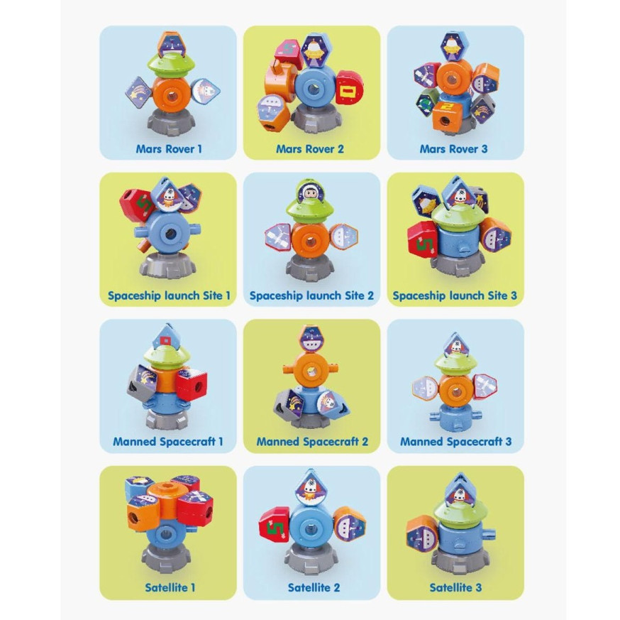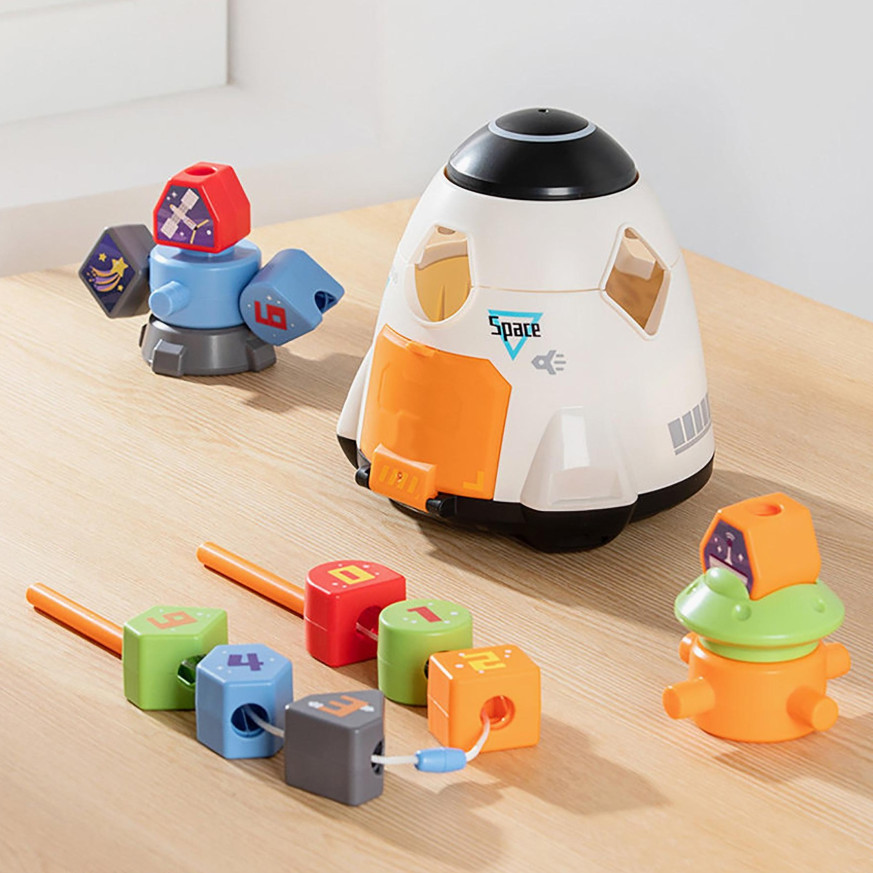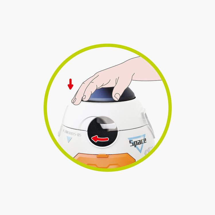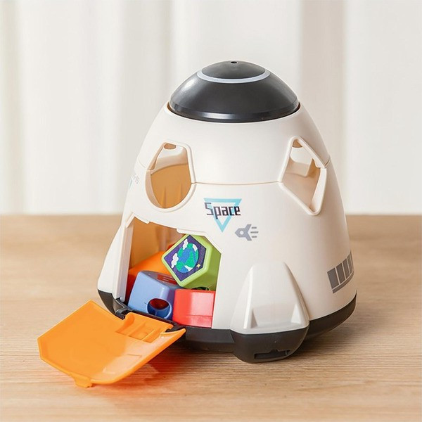 Чрез натискане на горната част на космическия кораб, капакът се завърта, променяйки формата на отворите в кабината за поставяне на блокчета, което подпомага разпознаването на форми.