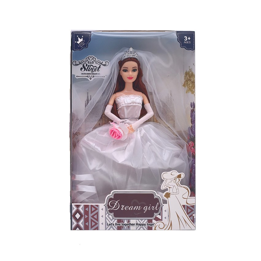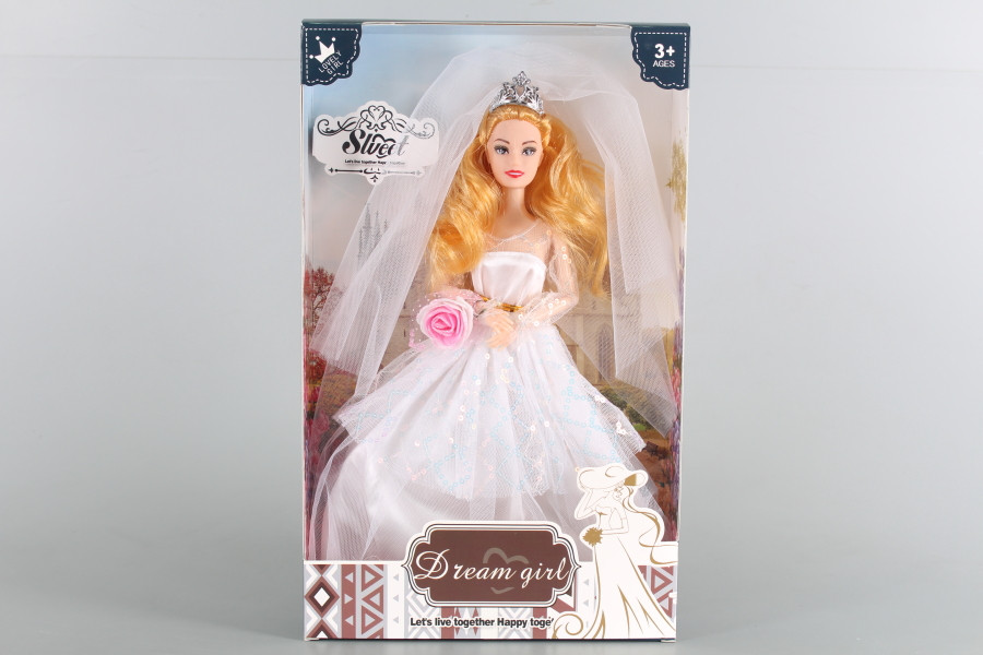 Кукла булка с 9 чупещи се стави, цвете, красива бяла рокля и воал.