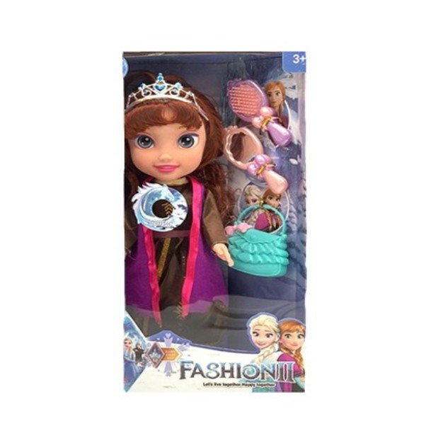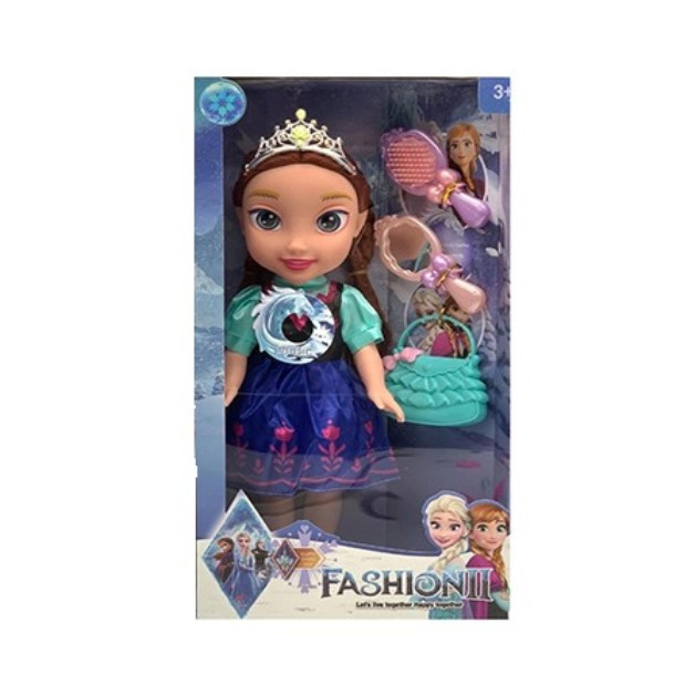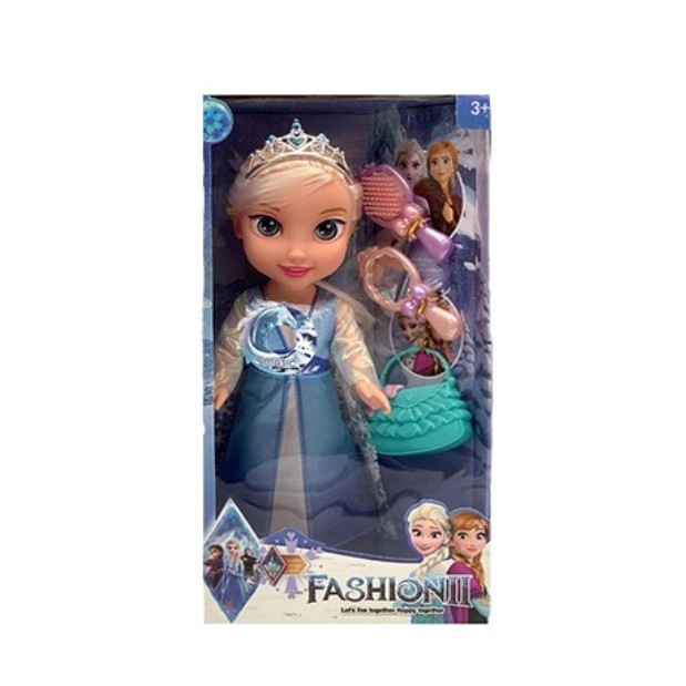 Кукла с красива рокля, гребенче, огледалце и макет на чанта за куклата.