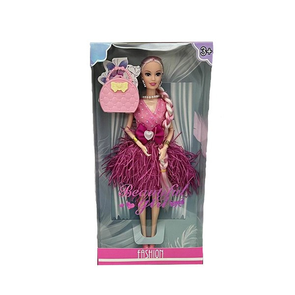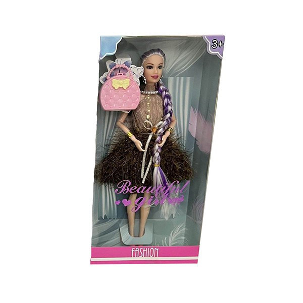 Кукла с модна дреха и дълга плитка на косата.