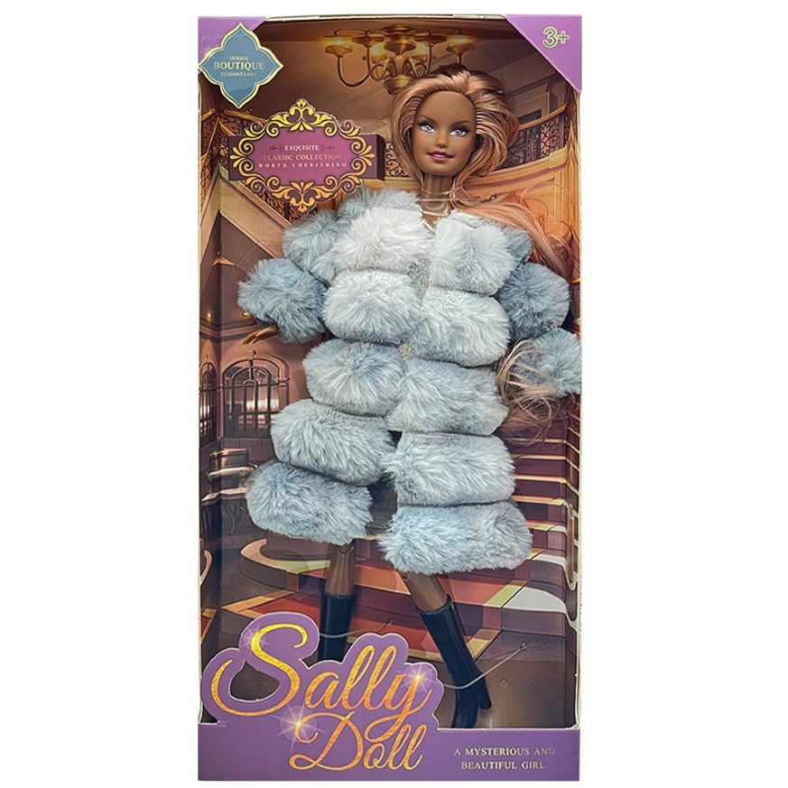Облечена с модерно дълго палто, сребриста рокля и ботуши с висок ток.