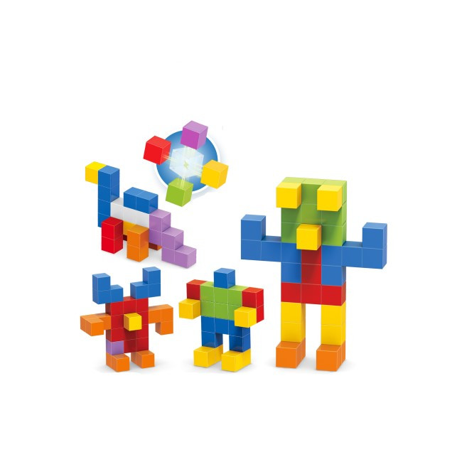 Комплектът съдържа 100 броя пластмасови цветни магнитни кубчета.