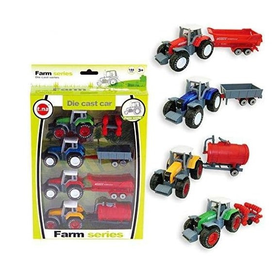Комплект метални трактори с пластмасови елементи и инвентар от пластмаса.