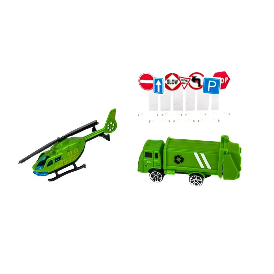 - две метални машини - хеликоптер и санитарен камион ( мащаб 1:64 ),