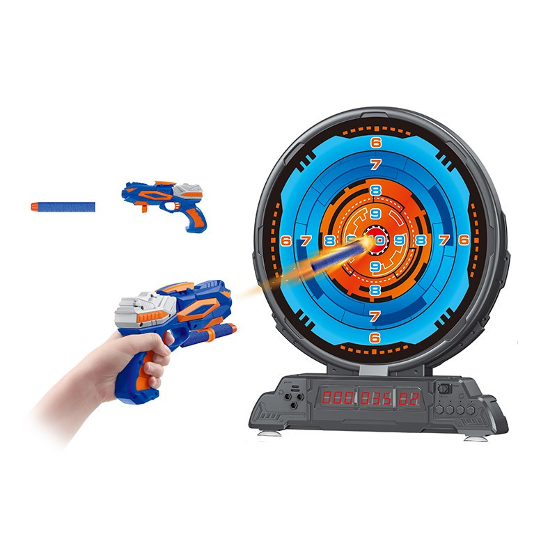 Комплектът съдържа пистолет, мишена и 10 меки стрели.