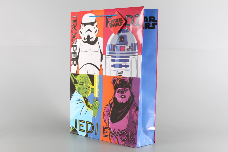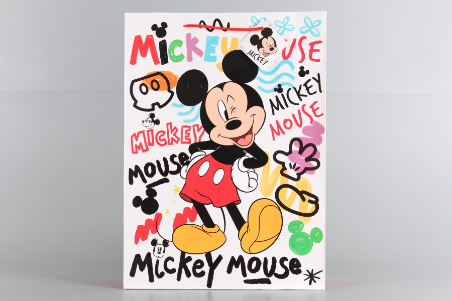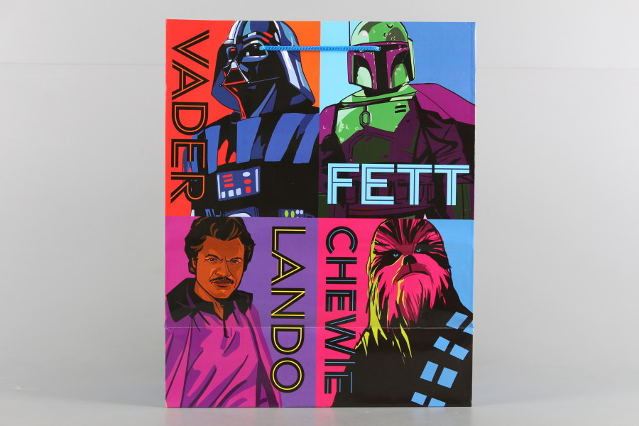 Подаръчна торбичка от хартия с различни картинки от двете страни.