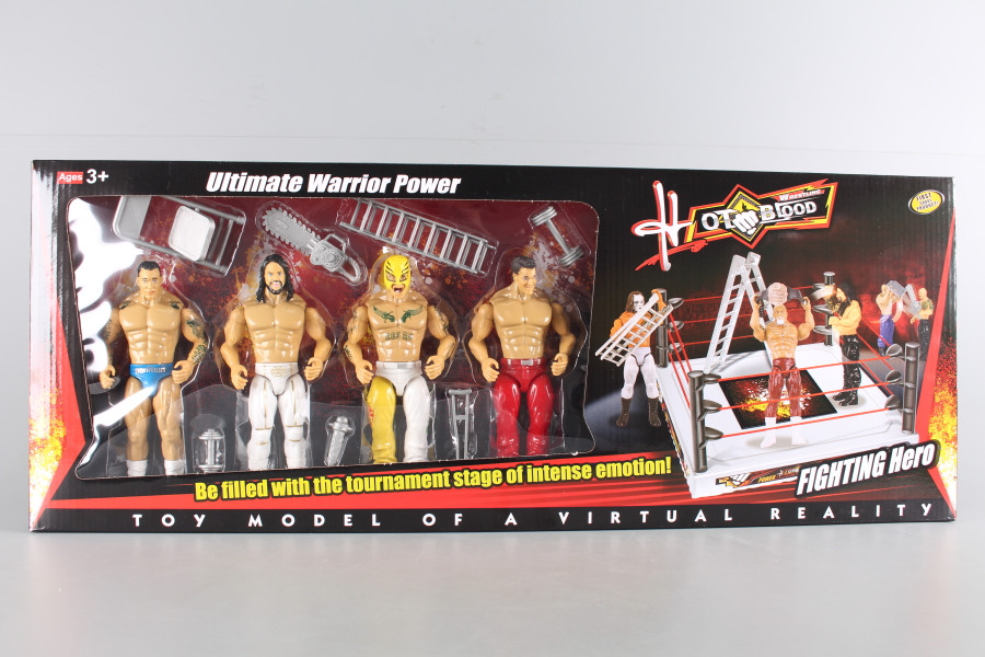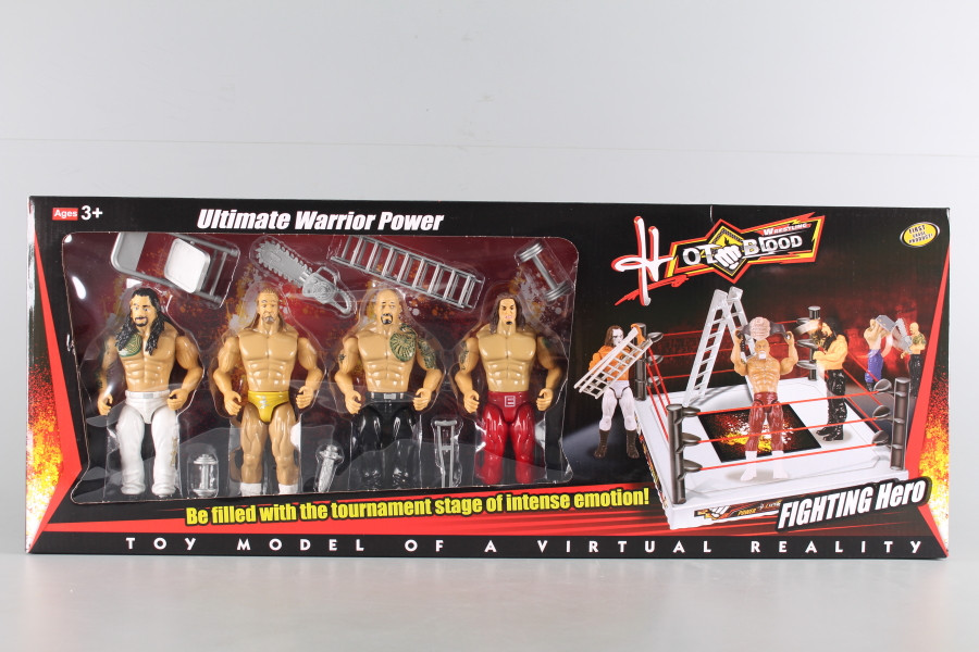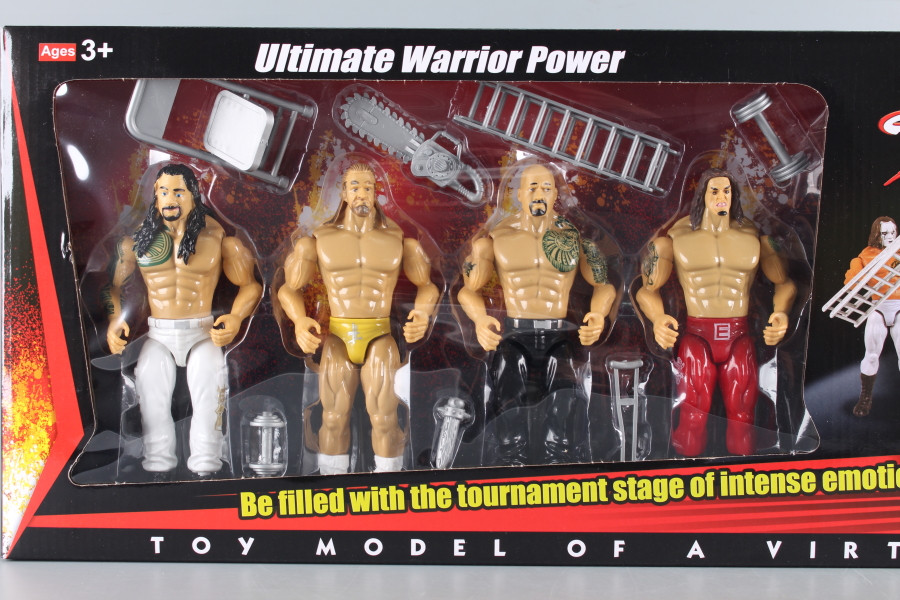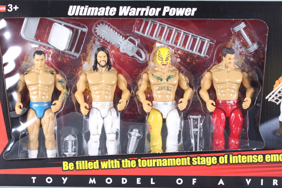 - четири фигурки на кечисти с подвижни ръце и крака,