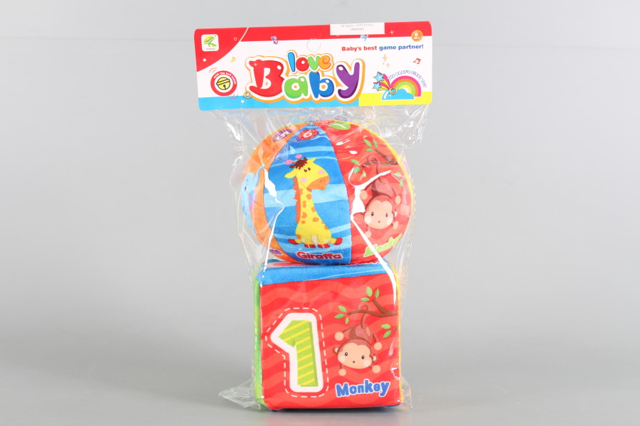 Комплектът съдържа меко кубче с дунапренен пълнеж и мека топка с пълнеж от вата.