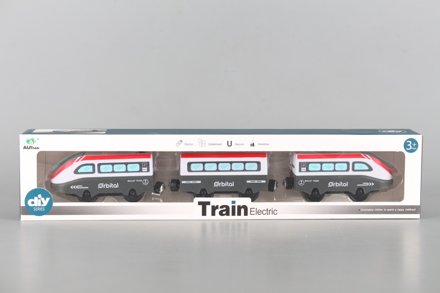 Комплектът включва два локомотива и един пътнически вагон, които се захващат един за друг посредством магнити.