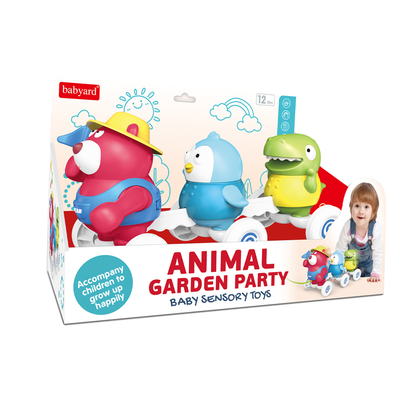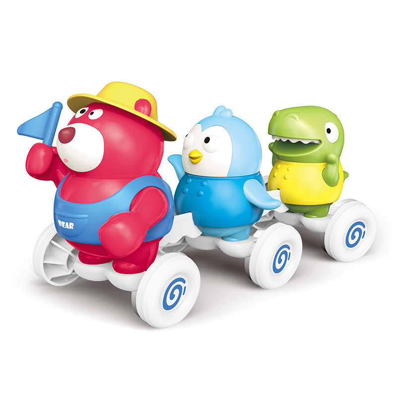 Занимателна играчка с весели животинки - мече, пингвин и динозавър.