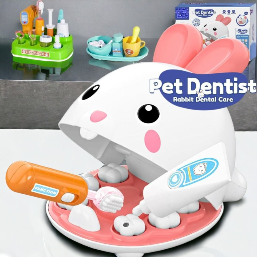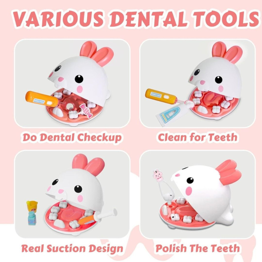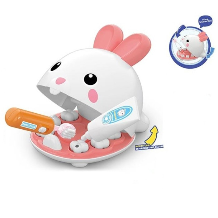 Този комплект за игра е предназначен за малки зъболекари, а основният „пациент“ на лекаря е сладко зайче.